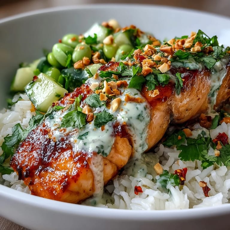 The first time I made this for guests, I was nervous about the timing because everything felt like it could go sideways simultaneously. Then I realized the beauty of it: the salmon bakes unattended, the salsa comes together while you're waiting, and the sauce is just whisking. My friend Sarah watched me assemble the bowls and said, "This looks too good to be this easy," and honestly, that's the entire appeal right there.