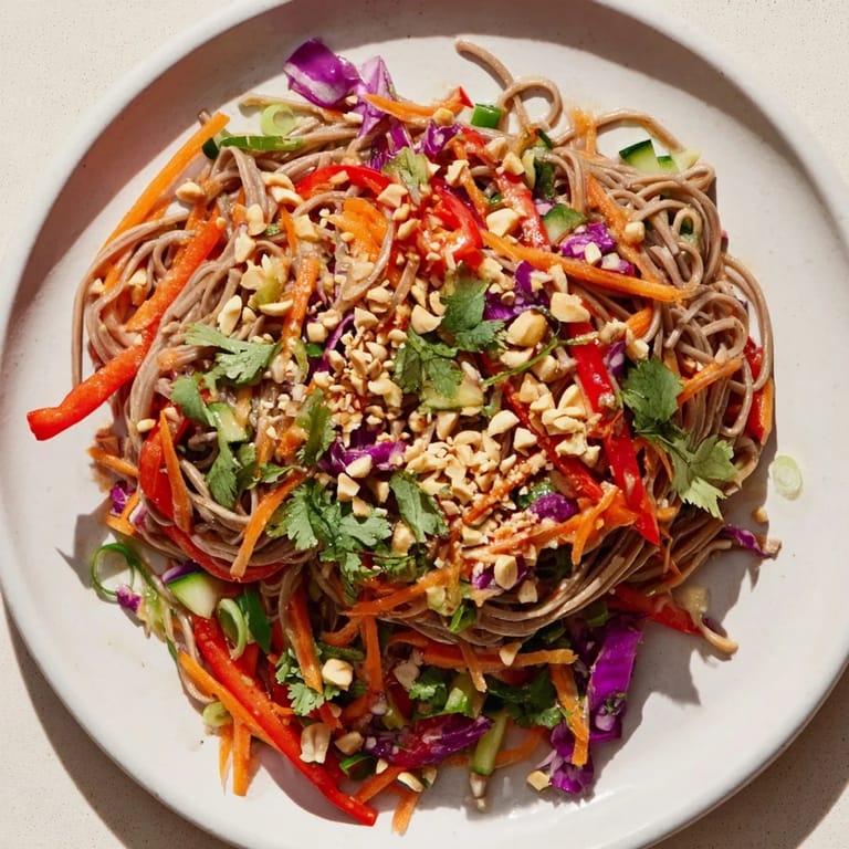 Most vegetable salads feel like a side dish because they lack substance, but noodles change the equation. This works as a complete meal because the carbohydrates from the noodles and the protein from the nuts and sesame seeds create actual satiation. I've served this to omnivores and they've eaten three bowls without once asking where the meat is. The dressing is rich enough to feel indulgent without being heavy, which is the sweet spot for a summer meal.