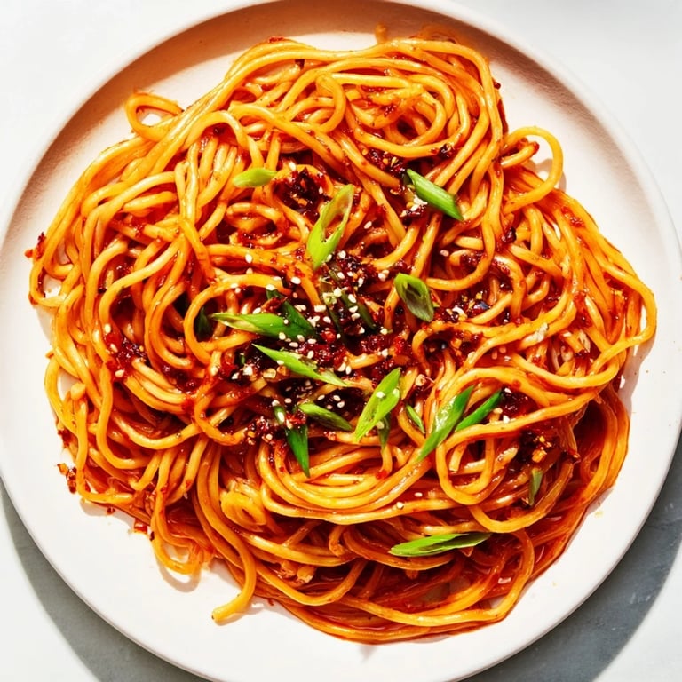 Save There's something about the smell of garlic hitting hot oil that makes you stop whatever you're doing. I discovered this dish on a Tuesday night when I had nothing in my pantry except noodles, a jar of chili flakes, and the kind of hunger that needed satisfying fast. Twenty minutes later, I had something so fiery and fragrant that my roommate wandered into the kitchen asking what smelled like a restaurant had moved in. That's when I knew this had to become my go-to when I wanted bold flavor with zero fuss.