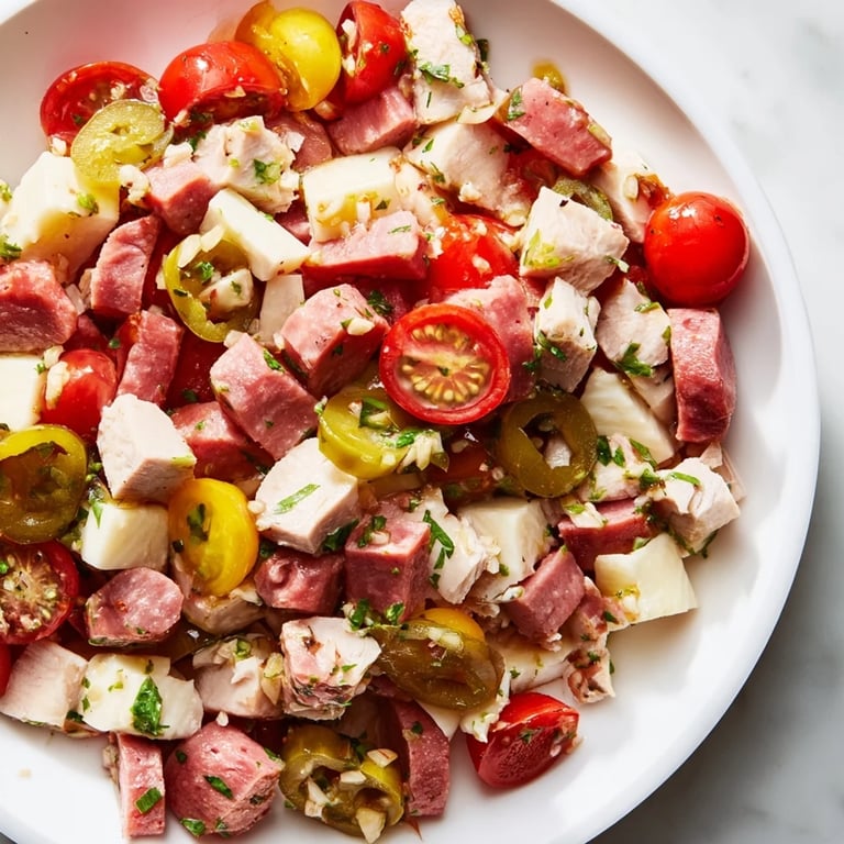 My neighbor Maria, who grew up in an Italian-American household, told me this salad reminds her of her grandmother's antipasto plates. She said the key is cutting everything into bite-sized pieces so you get all the flavors in every single fork. Now I never serve it any other way.