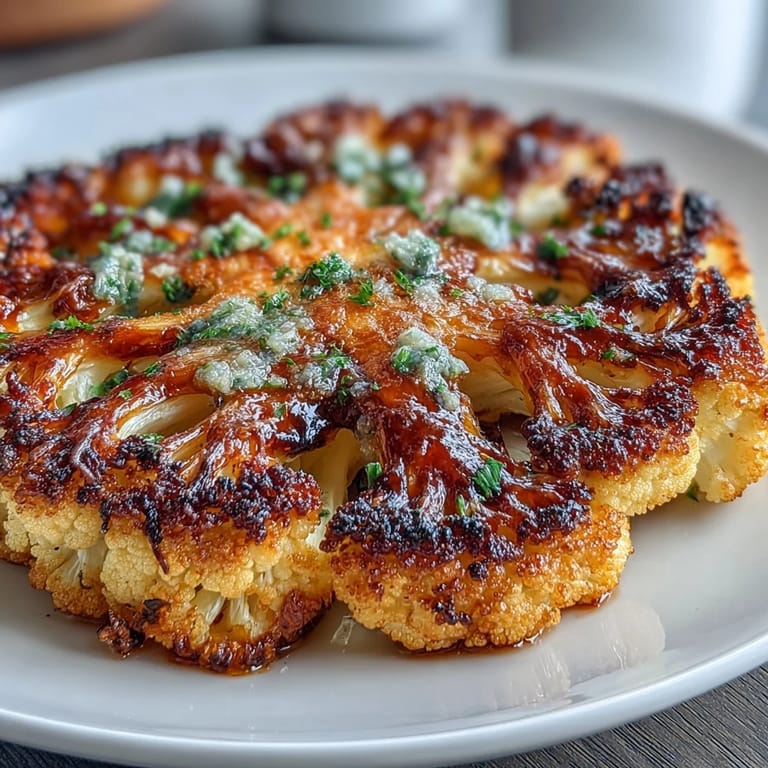 Save My friend texted me a photo of cauliflower steaks at a restaurant, saying they looked like something I needed to recreate. I was skeptical at first, thinking roasted cauliflower could never feel fancy enough to warrant its own plate, but then I sliced into a head and realized how perfect thick steaks would be for crisping up at high heat. The moment they came out of the oven golden and crackling, topped with that savory garlic-Parmesan crust, everything clicked. Now this is what I make when I want something that tastes indulgent but doesn't derail my day.