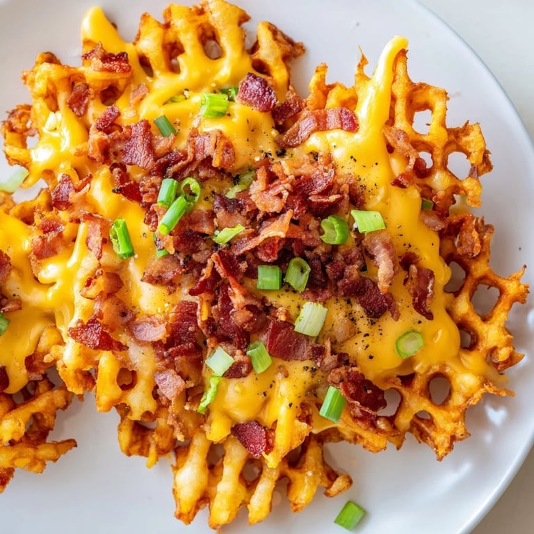 Save The first time I made loaded sweet potato fries was during a Super Bowl party a few years back. I had forgotten to plan a proper appetizer, so I grabbed a bag of frozen sweet potato waffle fries from the freezer and started piling on whatever I could find in the fridge. The combination of salty bacon, sharp cheddar, and cool ranch turned out to be so addictive that people abandoned the actual game to hover over the platter.