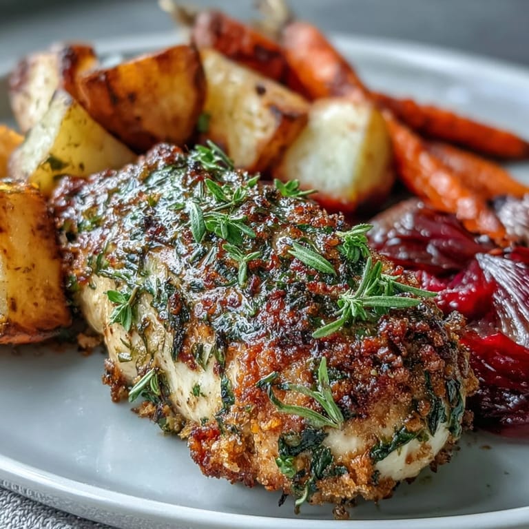 Last fall, I made this for my sister's surprise visit and she walked into the kitchen asking what smelled so incredible before she even said hello. The rosemary and thyme were filling the entire apartment, and watching her face when she saw the golden vegetables tumbled around those herb-crusted breasts made me realize how a one-pan meal could still feel like you'd actually tried. She asked for the recipe before dessert and has made it probably twenty times since.