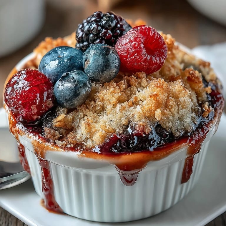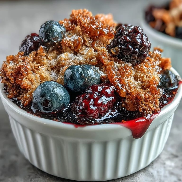 Save My neighbor knocked on my door one late afternoon with a pint of fresh blackberries she'd picked that morning, and I had maybe twenty minutes before she was coming back for coffee. I rummaged through my pantry, found some oats and brown sugar, and threw together this little crumble without overthinking it. The whole thing came together so fast and smelled so good baking that I've made it at least once a week since—sometimes with whatever berries I find, sometimes when I just need something warm and honest to eat.