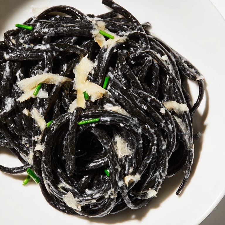 I learned to make this the week before my sister's birthday dinner, when she mentioned wanting something that felt fancy without the fuss. She walked into my dining room, saw those glossy black noodles coiled on her plate, and actually gasped. We ate slowly that night, savoring each bite and laughing about how something so simple could feel so indulgent. Now she requests it every year, and I never say no.
