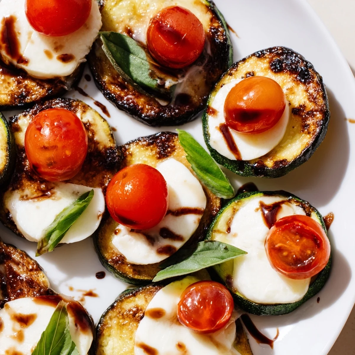 Once I mastered the basic version, I started playing. A thin slice of prosciutto tucked under the tomato tastes decadent; a pinch of red pepper flakes brings heat; a small dollop of pesto instead of plain basil changes everything. Some nights I brush the zucchini with a whisper of garlic oil before roasting, which makes even simple versions taste more intentional and restaurant-worthy.